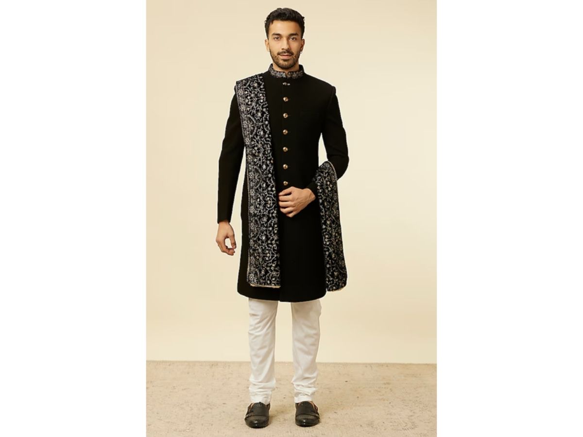Manyavar has become synonymous with wedding wear for Indian men. It has almost monopolized the market when it comes to sherwanis, bandhgalas, and celebratory ethnic menswear. Manyavar thrives because it understands the emotional weight carried by wedding attire in Indian culture. It gives grooms the theatricality they crave without making them feel overwhelmed. The fit, the fabric, the finish, everything is engineered to make you look like you belong on a throne.